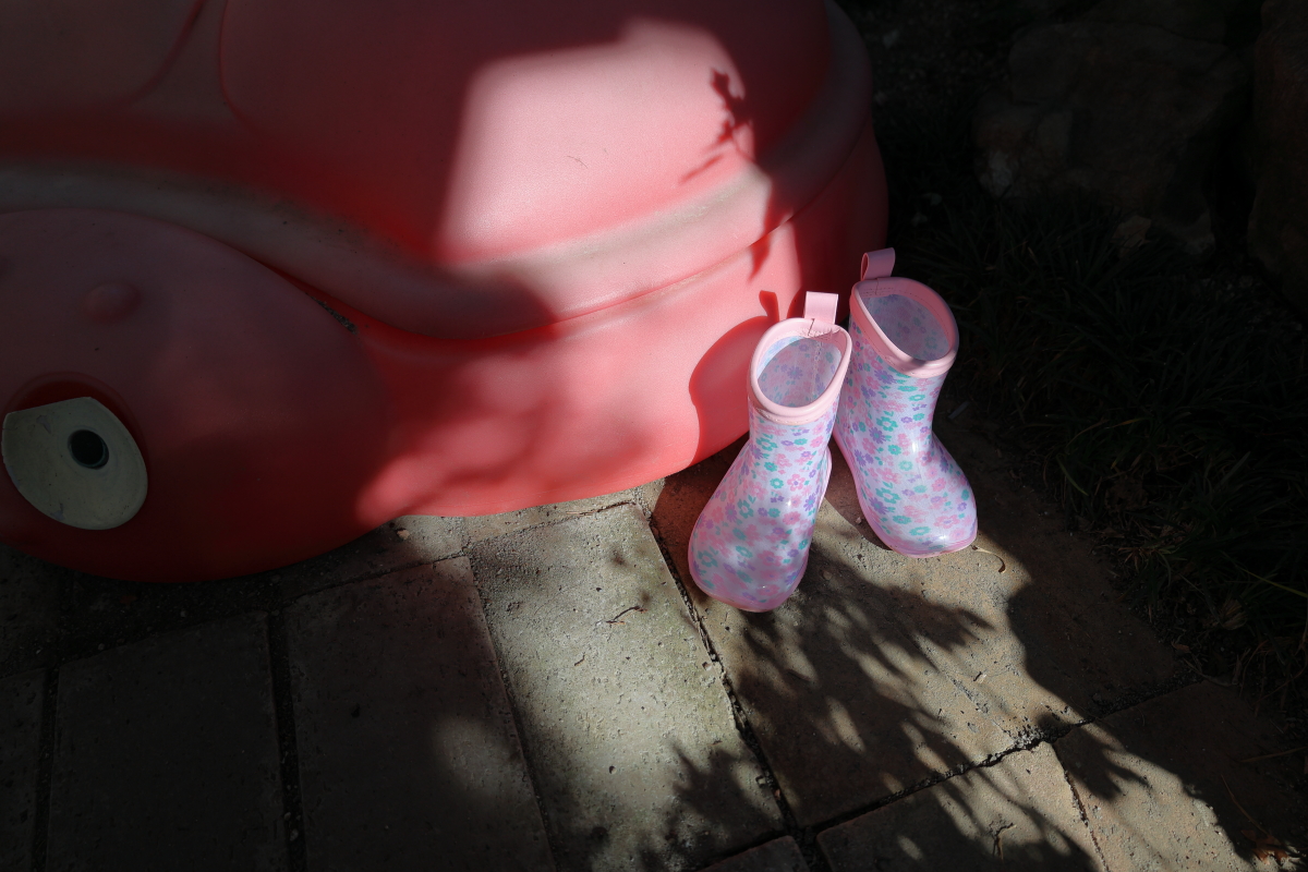 小っちゃな長靴を見ると、晴れている日も長靴を履いて元気に歩くわが子らを想い出す。