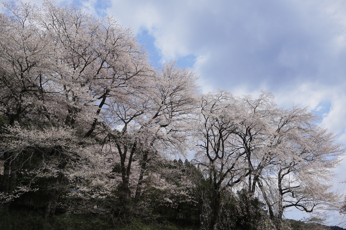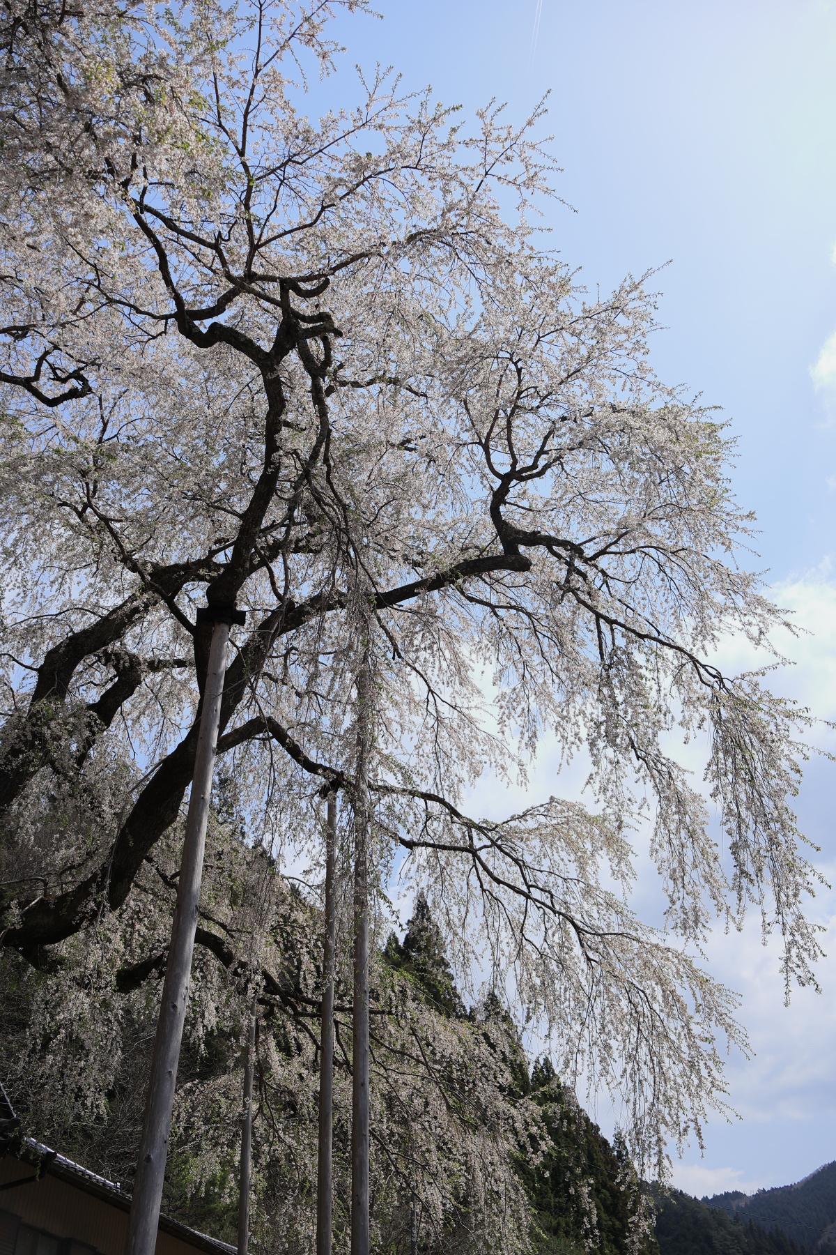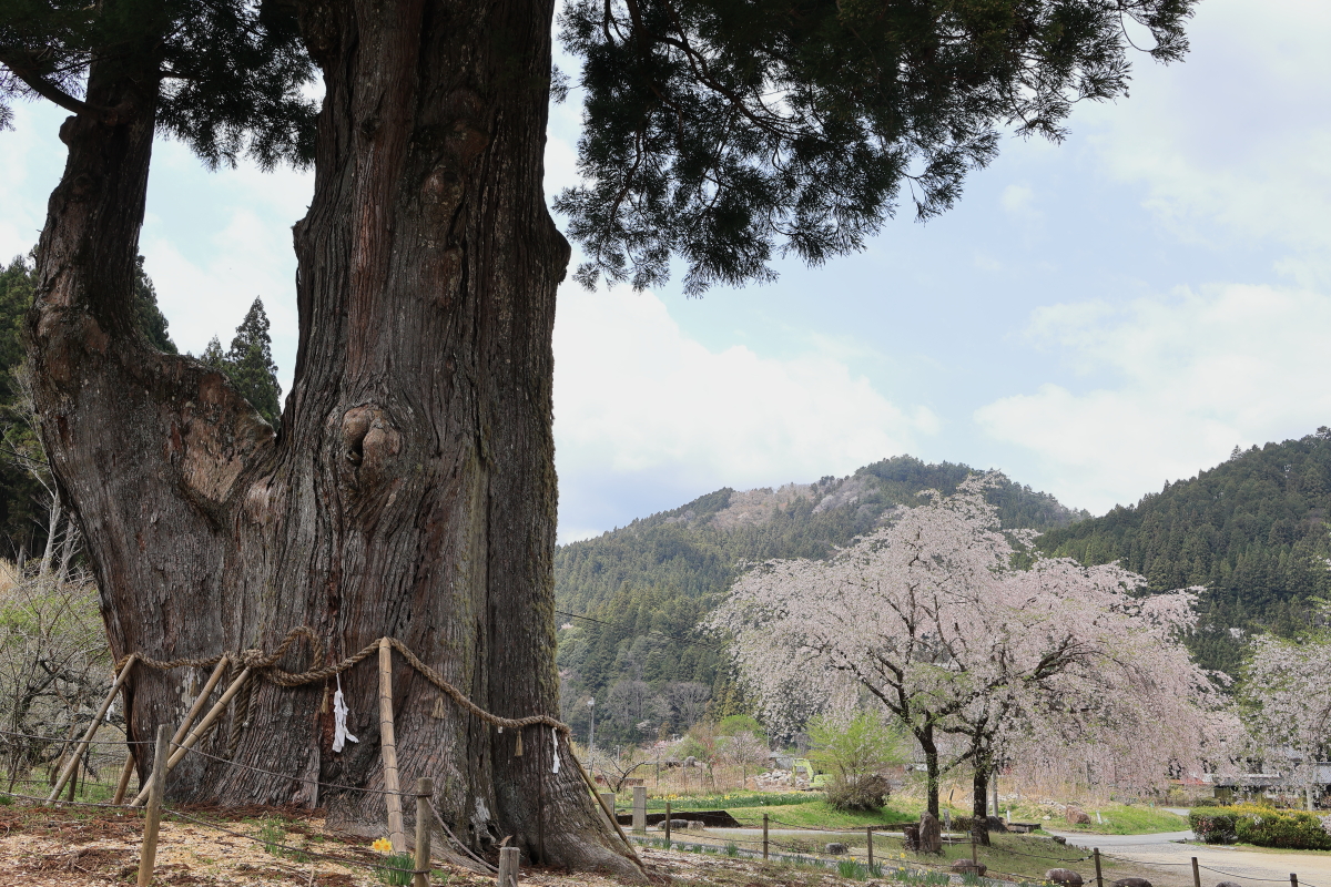 根羽村の大杉と福嶋うどん屋のしだれ桜は何とか散り始めであったが美しい。