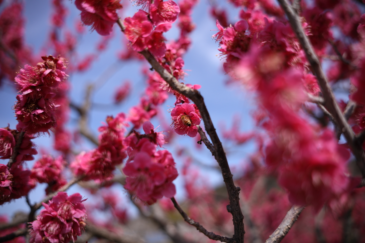 蜜蜂が盛んに梅の花に飛び込んでいく。