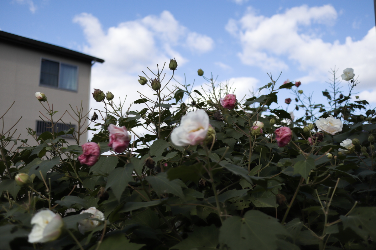 北風が吹いて寒くなった。まだ萩や芙蓉が咲いている。